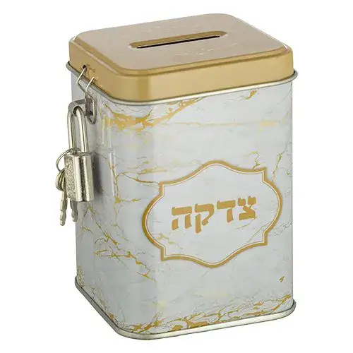קופת צדקה פח מרובעת “שיש זהב” 10 ס”מ