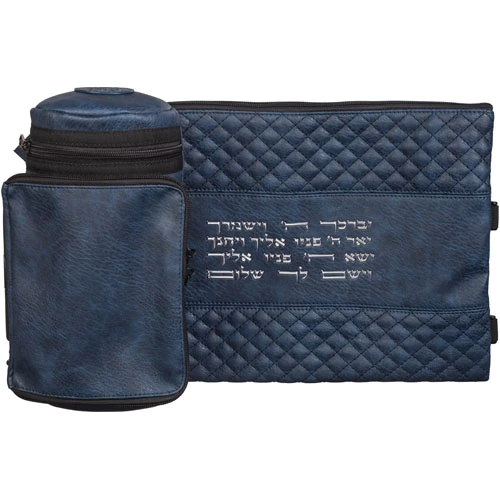תיק תפ טרמי דמוי עור כחול עם אותיות בולטות יברכך 22 ס"מ