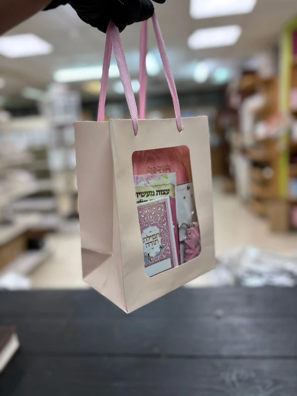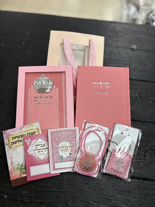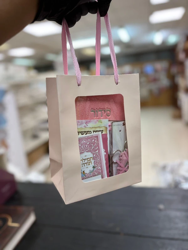 מארז מתנה שקית מפוארת לבת ישראל | סידור קורדרוי | תהילים | מחזיקי מפתחות | ליקוטי תפילות |