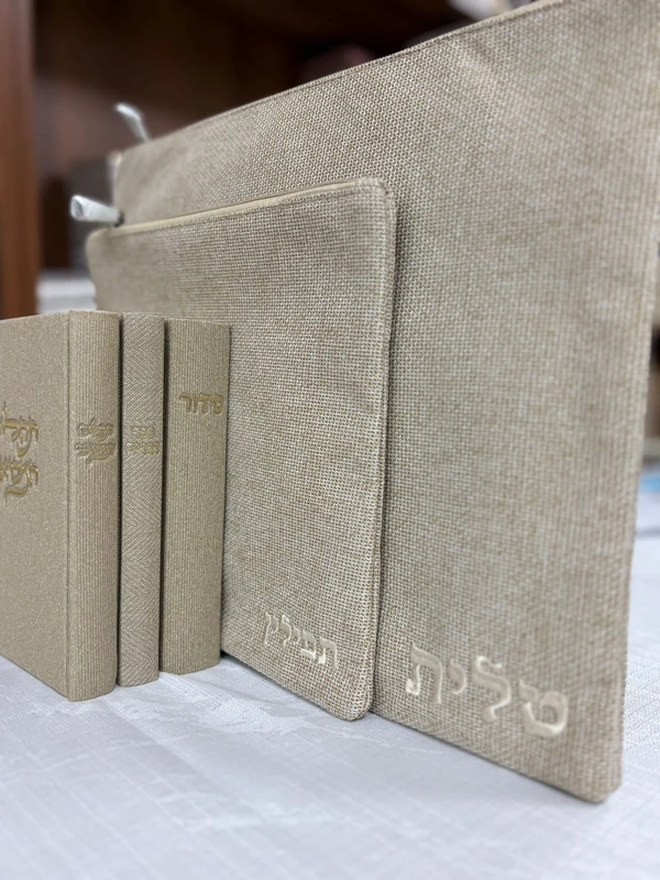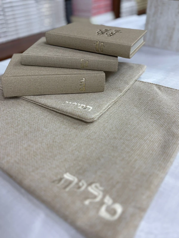 סט קורדרוי לגבר | סידור, סט טלית ותפילין, תהילים, וספר דברים בכריכת קורדורי | צבע לבן אבן