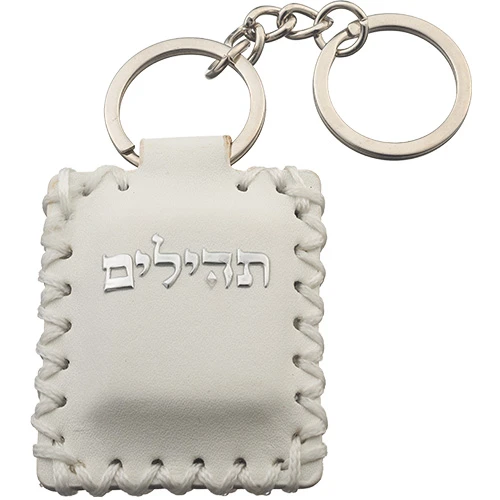 מחזיק מפתחות דמוי עור עם תהילים 6X5 ס"מ צבע לבן