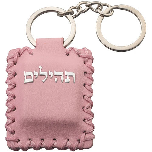 מחזיק מפתחות דמוי עור עם תהילים 6X5 ס"מ צבע ורוד