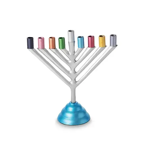 חנוכייה לנרות אלומיניום מהודרת עם קנים צבעוניים 19