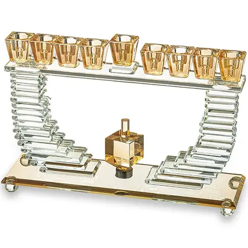 חנוכיה קריסטל שקוף זהב עם סביבון 19.528 סמ