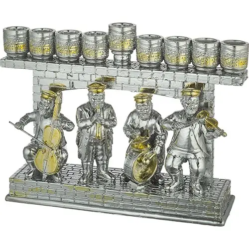 חנוכייה מהודרת מפוליריזן מוכסף עם חסידים מנגנים 2216 ס
