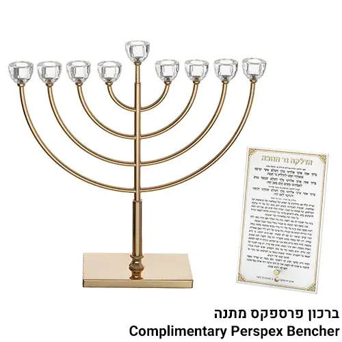 חנוכיית מתכת גימור זהב עם ראשי קריסטל 76 ס