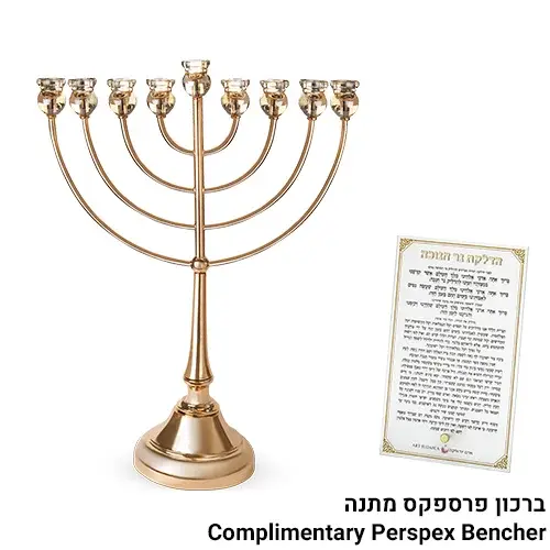 חנוכיה ענקית 62 סמ בתי נר רוז גולד קנים קריסטל