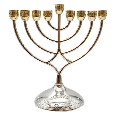 חנוכייה מתכת מהודרת עם קנים זהב 28 ס